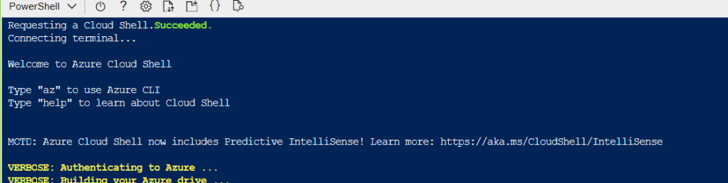 Click the > Shell icon at top right corner of azure portal after this enter the required data as shown below.